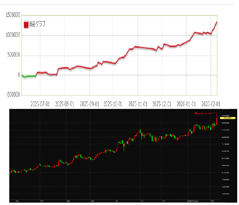 その後も 順調に累計利益 134万円と続伸中。(2/9日時点)